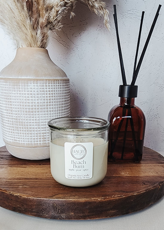 Our candles combine organic, non-GMO soybean oil with premium fragrance and essential oils. They are always free from additives, phthalates, parabens, sulfates, and petroleum. All of our candles are hand-poured into reusable jars or drinking glasses.